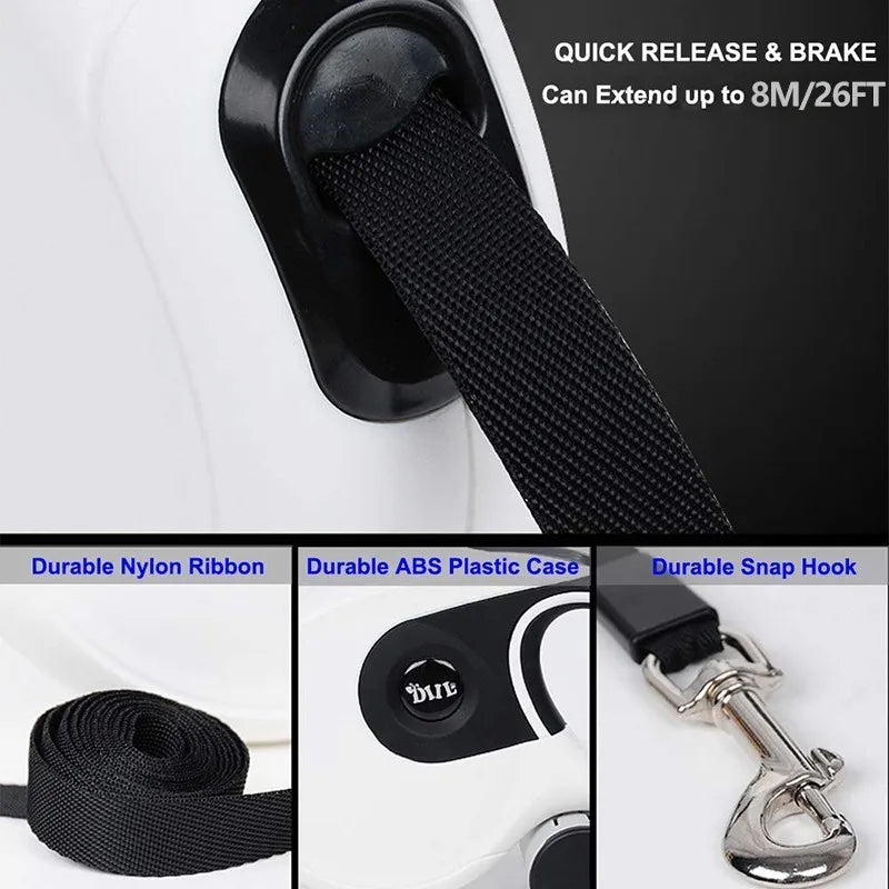 RETRACTABLE DOG LEASH : Can be extended to 26FT (around 8M). With this retractable dog leash, you’ll easily keep your pets under safety control, at the same time it gives your pets with the best freedom.