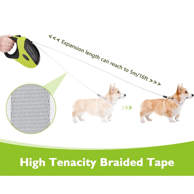 SUITABLE FOR MOST DOGS : For any type of dog with up to 50kg/110lbs in weight. This retractable leash works for medium-sized and smaller dogs. Strong and Durable Nylon Ribbon extends 16 Feet and avoids tangling.